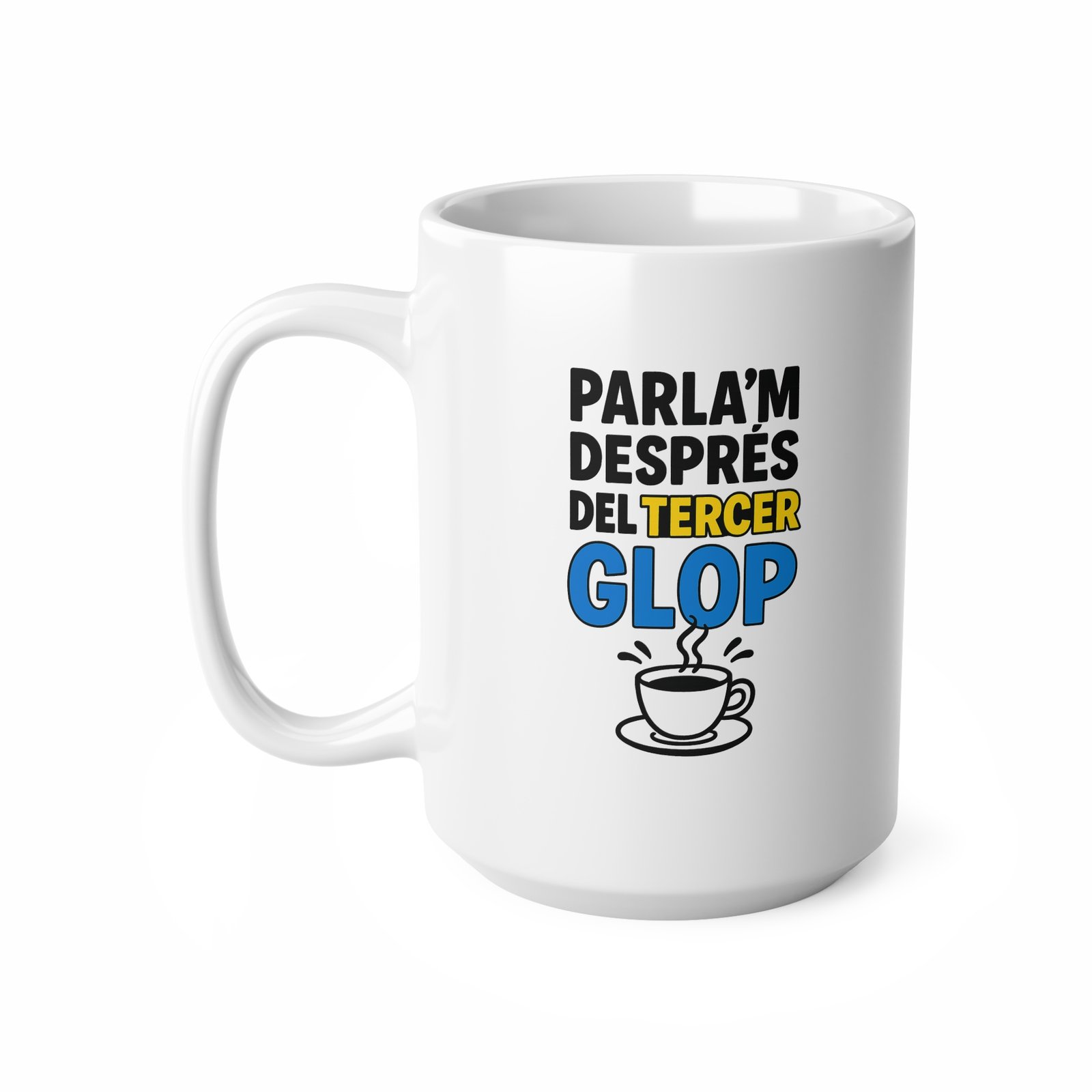 Descobreix la nostra tassa Parla’m després del tercer glop, perfecta per gaudir del cafè amb un toc d’humor català. Una tassa amb frases que farà somriure tothom a casa o a l’oficina!