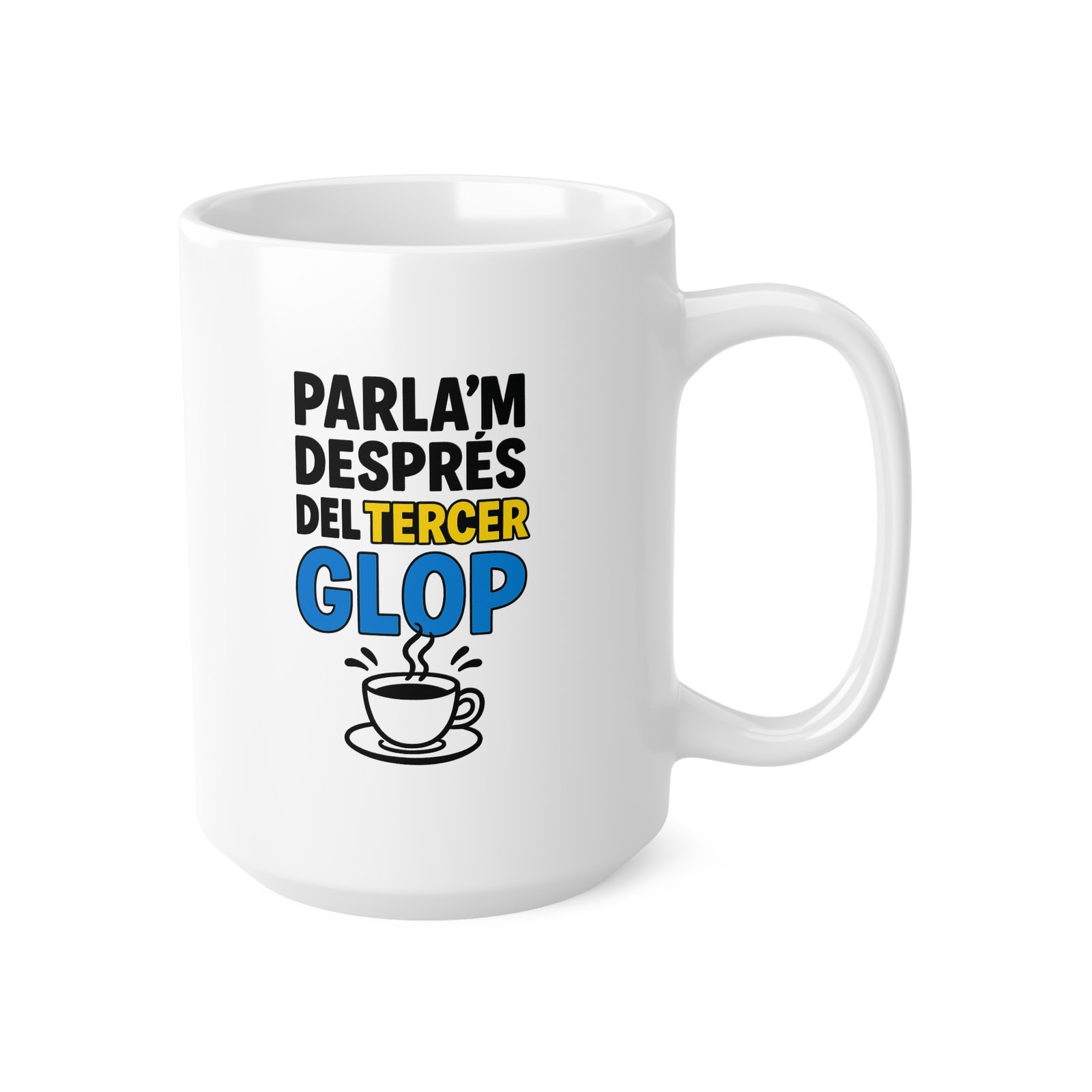 La tassa Parla’m després del tercer glop és el que necessites per començar el dia amb bon humor. Dissenyada per a homes i dones catalans d’entre 20 i 60 anys, combina la passió per Catalunya amb un toc canalla i divertit. Aquesta tassa amb frases catalanes és ideal per al cafè del matí, el vermut o fins i tot com a regal original de Catalunya. Anima cada cita amb aquesta tassa amb frases catalanes i gaudeix de l’humor que transmet. Perfecta per a els qui aprecien una tassa de cafè de qualitat amb un toc de personalitat catalana. No esperis més i fes-te amb la teva tassa amb humor català, perquè un bon glop sempre acaba amb una bona frase!